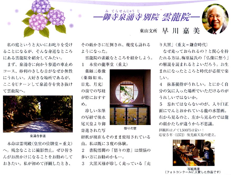 この取材直後に写仏をさせていただける法音院を知った。今では、この写仏コースとセットで大いに地元のPRに務めさせていただいている。 皆さん! ホントに良いものですよ! ぜひご一緒しましょう!!