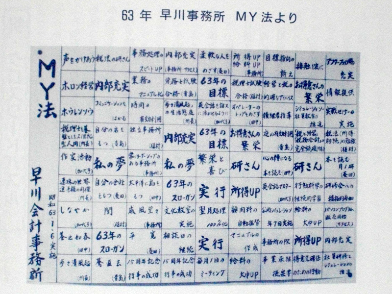その後、MY法による社内ミーティング。これも始めて20年は続けているだろう。所内に大書して張り出してあるが、それなりにマインドにインプットされて役に立っていると思っている。