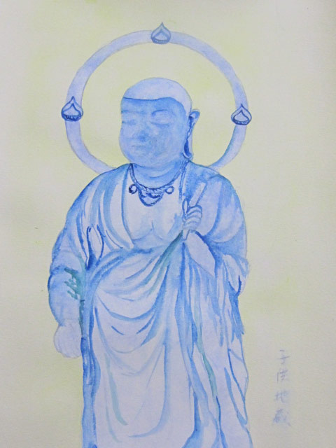 やむなく写真に収め、スケッチは院内別のところの七地蔵のひとつ〈こども地蔵〉を描いてみました。