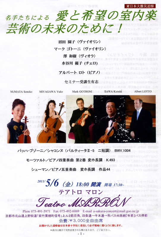 東日本大震災に心を痛める朝倉圀臣、泰子さんご夫妻が「追悼チャリティコンサート」を次つぎと企画・開催されています。早川にも協力要請があり、私のできる範囲で支援することにいたしました。