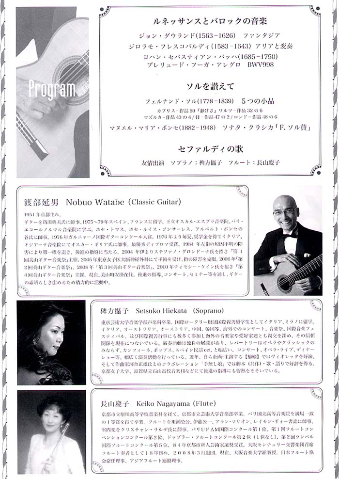 本年度のサマーセミナーにご出演いただいたギタリスト・渡部延男さんからのご案内です。
