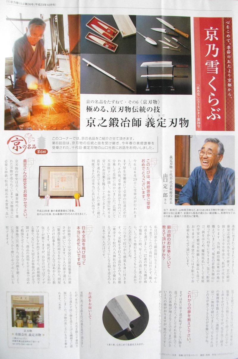 京都ブランドの名品を訪ねる「京の雪 ニュースレター」シリーズに山口定一郎さん が取り上げられました。