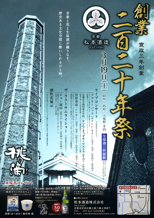 酒谷宗男さんのプロデュースによる「松本酒造 創業220年祭」が、当事務所でおなじみのメンバーの出演によって華やかに開催されます。
