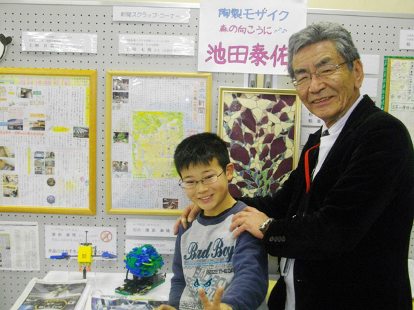会場に「はやぶさ」を展示してもらいご機嫌のやすべぇ(孫)と辻井さん。