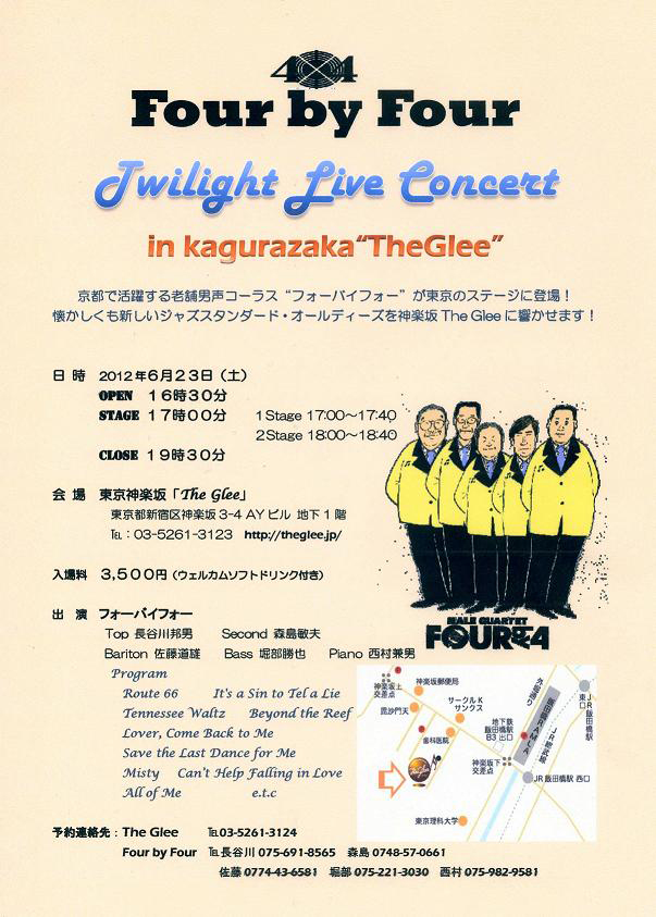 京都で活躍する老舗男性コーラス“フォーバイフォー”が東京のステージに登場! 懐かしくも新しいジャズスタンダード・オ-ルディーズを神楽坂 The Glee に響かせます!
