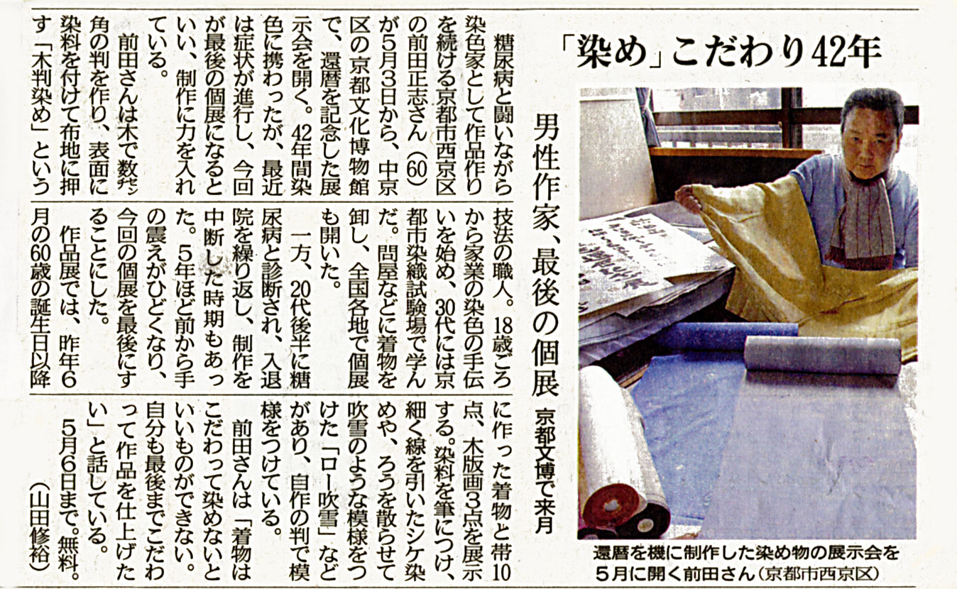 小さな木版を組み合わせて着物の図柄や木版画を創作する独自の技法を追求する前田正志さんが、還暦記念展を催されます。