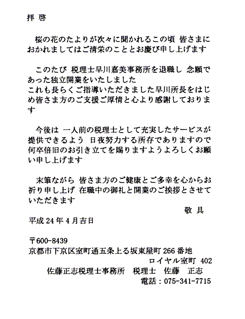 当事務所に18年勤務していました佐藤正志くんが本年3月末をもって退職、下京区で事務所を開設しました。 ご支援をよろしくお願いいたします。