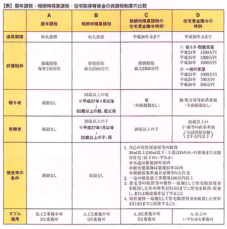 相続税の大増税で世の中がかしましい。この機会に相続対策として有効なものをまとめて紹介しておきましょう。この表以外に平成25年度改正の目玉のひとつである「直系尊属(祖父母や父母)から孫への教育資金の一括贈与」の非課税がスタートします。