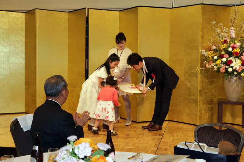 ご出席の皆さま、祝花や抽選会への景品をご提供いただきました皆さま、ありがとうございました。特に年度末の大変な時期に長時間ご臨席いただいた京都信用金庫理事長増田寿幸様、公務ご多忙のところを東京から駆けつけてくださった衆議院議員前原誠司様に心から感謝申し上げます。